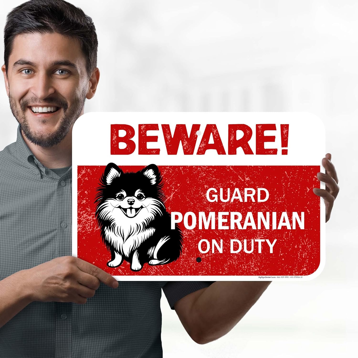 Beware Guard Pomeranian On Duty With Graphic Sign, 12x18 Inches, Rust Free .063 Aluminum, Fade Resistant, Made in USA by My Sign Center