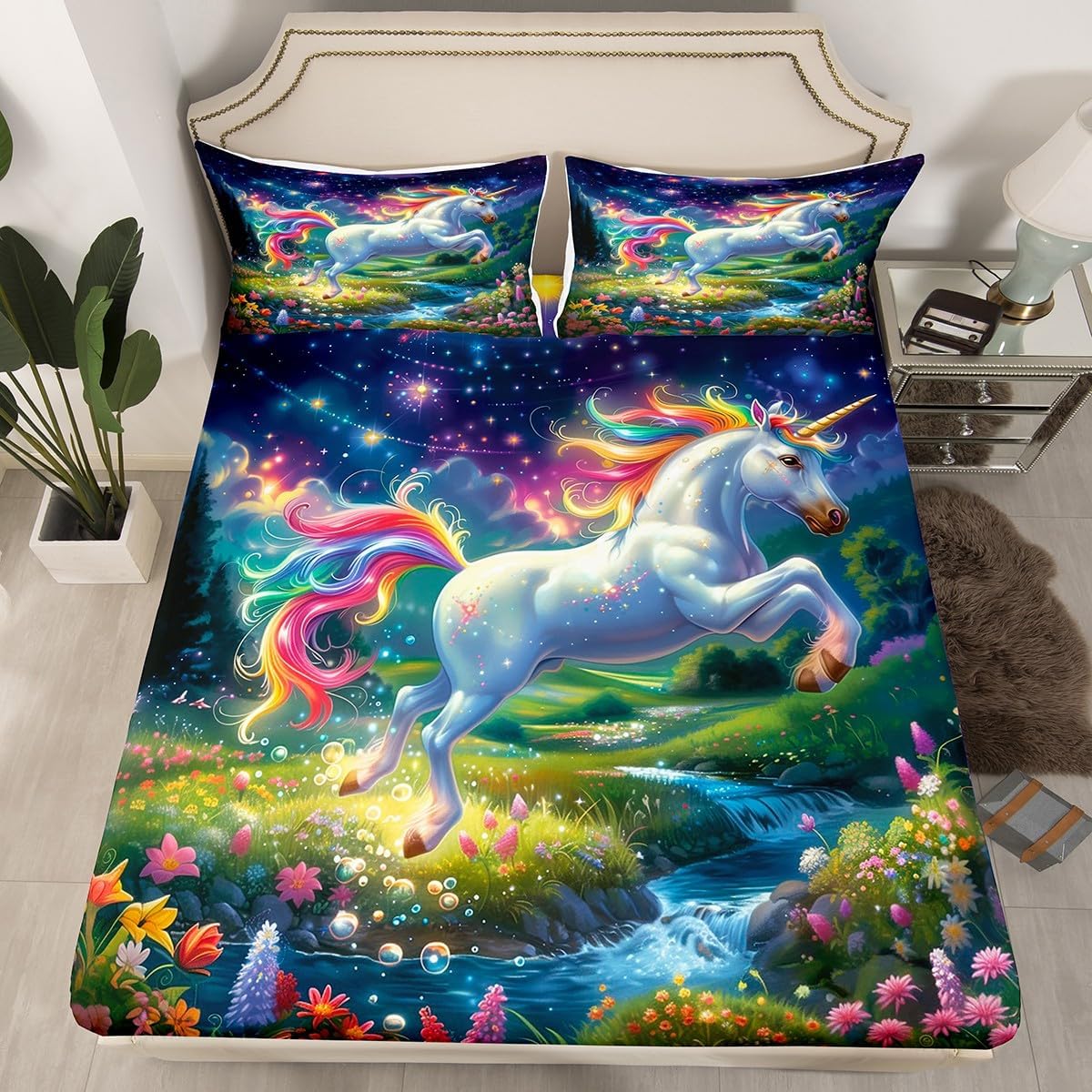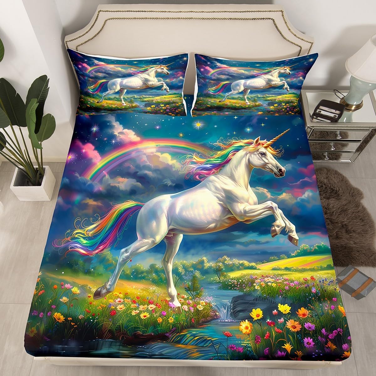 Package Include: Fitted sheet and Pillowcase, our high quality designs match any decor High quality Fitted Sheet Set 3D Pattern Bedding Set, simply decorating your rooms any time you want, bringing you fresh feel for year round use. Size Information: Twin size 2pcs Fitted Sheet set: 1 Fitted Sheet 39"W x 75""L x 16"H, 1 pillowcase 20" x 30" Full size 3pcs Fitted Sheet set: 1 Fitted Sheet 54"W x 75"L x 16"H, 2 pillowcase 20" x 30" Queen size 3pcs Fitted Sheet set: 1 Fitted Sheet 60"W x 80"L x 16"H, 2 pillowcase 20" x 30" Personalize your bedroom: Beautiful design and colorful print, makes your bedroom unique and brings you a wonderful dream. Washing instructions: Machine wash separately in cold water,hang dry, do not bleach. Occasion: The soft Fitted Sheet bedding sets designed for Children ,Adult, Men, Women, Teens. This Fitted Sheet set is also suitable for full seasons, Spring, Summer, Autumn and Winter.