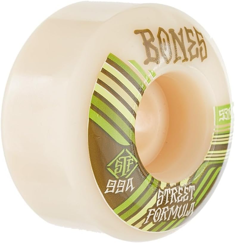 STREET RETROS 52x34 V4 Wide street tech formula 99a white Street Tech Formula® Bones Street Tech Formula powers the legendary Bones STF wheels that roll fast, grip when you need to and slide when you want to, without flat spotting. STF gives you more control to skate with confidence. Bones STF wheels outperform all other wheels, and because they wear so well, they last several times longer than normal wheels, making STF wheels the best for less. Bones STF wheels are available in the original 103A and the new 99A Easy Streets™ for greater roll, control and softer landings on rougher terrain. Wheel Core None Wheel Diameter 52mm Wheel Width 34mm Wheel Hardness 99a Wheel Formula STF Wheel Color White Wheel Suggested Use Street Wheel Surface Smooth Wheel Shape V4