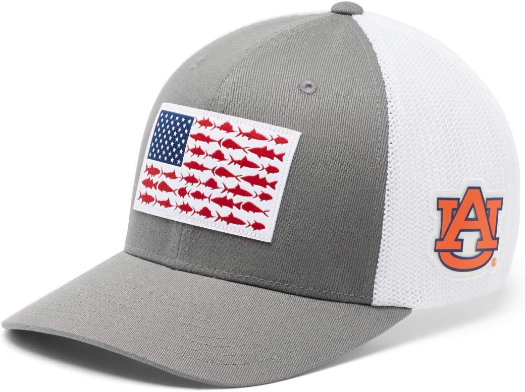 Built with cooling mesh, this PFG cap keeps the sun off your face as you reel ‘em in. A Flexfit band ensures a comfortable, custom fit. This hat is crafted of soft cotton and elastane fabric that works hard to shield the sun from your eyes while it remains comfortable enough for all-day wear. It's equipped with a ventilated back for ultimate breathability during hot days out on the water. The embroidered logos at the front and side add a sense of style that's subtle and embodies your college spirit. Whether you're looking for a cap to wear out on the water, around campus, or one for daily wear, this cap is perfect for any outdoor activity. Columbia offers this mesh cap with multiple college logos with a FlexFit system in two sizes.