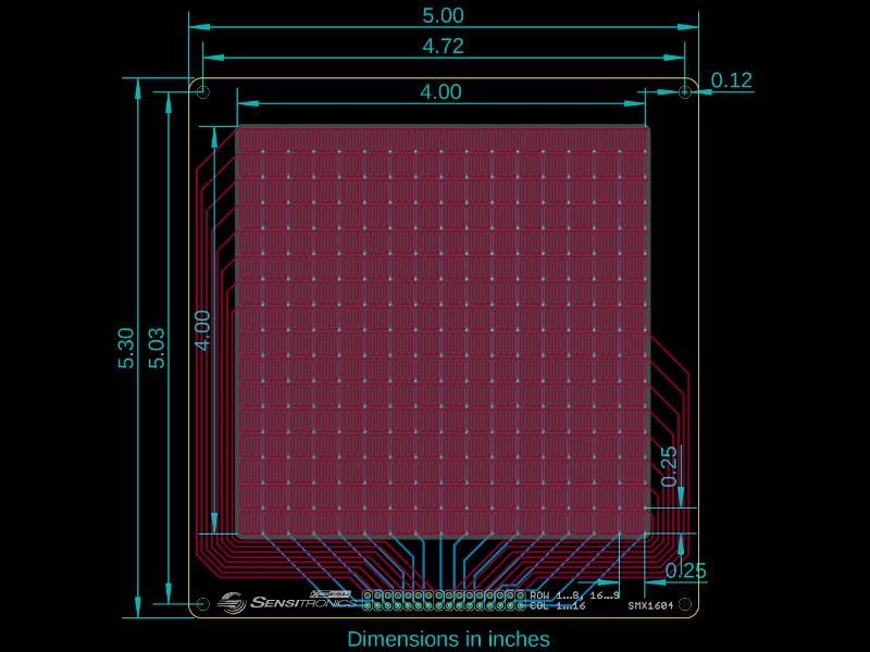 • Easy to integrate. Arduino tutorial here: https://www.sensitronics.com/tutorials/fsr-matrix-array/