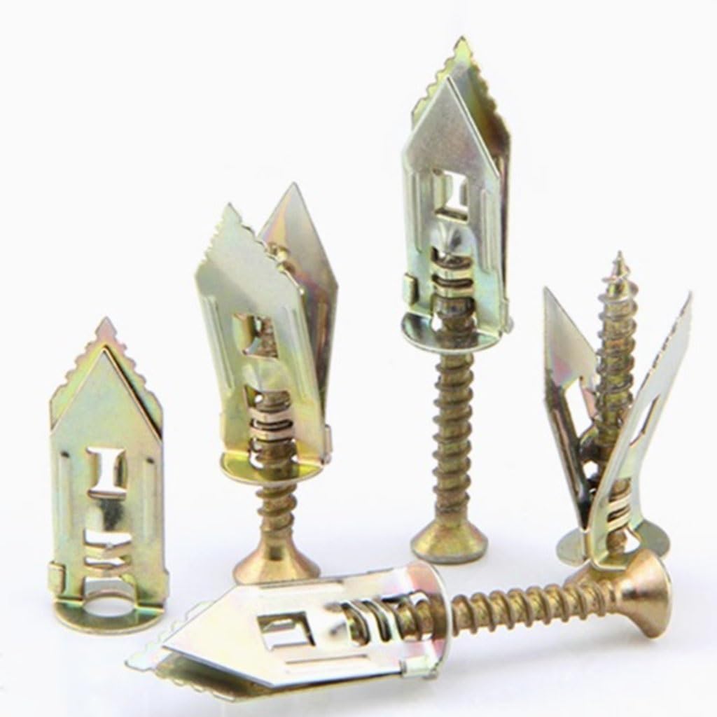 Self-Drilling Anchor:Provides durability and strength. Self-Drillingdry wall anchors and screws kit Simplifies installation and allows you to secure items directly to drywall without pre-drilling holes Size: Expansion tube+M4 * 35Self-Drilling Anchors Screws Material:The screws are made of carbon steel, galvanized, sturdy structure and durable. Compared with conventional plastic anchors, there is no need to drill holes in the wall, preventing any damage to the wall and leaving no holes after use.When removing the anchor, simply stretch (1-2mm) wide on the wall and it will not damage your wallWall anchors for drywall heavy duty:Adopt an expansion design with a ribbed anchor and a tapered sharp head that expands on two opposite sides when you tighten the screw, increasing holding power. For fasten patio umbrella,outdoor patio furniture set,shelf support pegs,fake owl,halloween decorationsZinc Plated Steel Self-Drilling Anchors - Wide Application: Self drilling screws deep thread design provides strong engagement gypsum board, drywall, light brick wall board, etc. Drywall anchors and screws kit work great on hanging all kind of item on your home decor, such as picture frame, wall lamp, curtains, clock, plants, etc.Simple Installation:1:Knock the anchor into the drywall, 2:Insert screw through fixture and into metal plug, 3:Tighten screws secure. It is more convenient and quicker than traditional plastic anchorsKind reminder: If you have any questions, please feel free to contact us and we will reply to you within 24 hours!