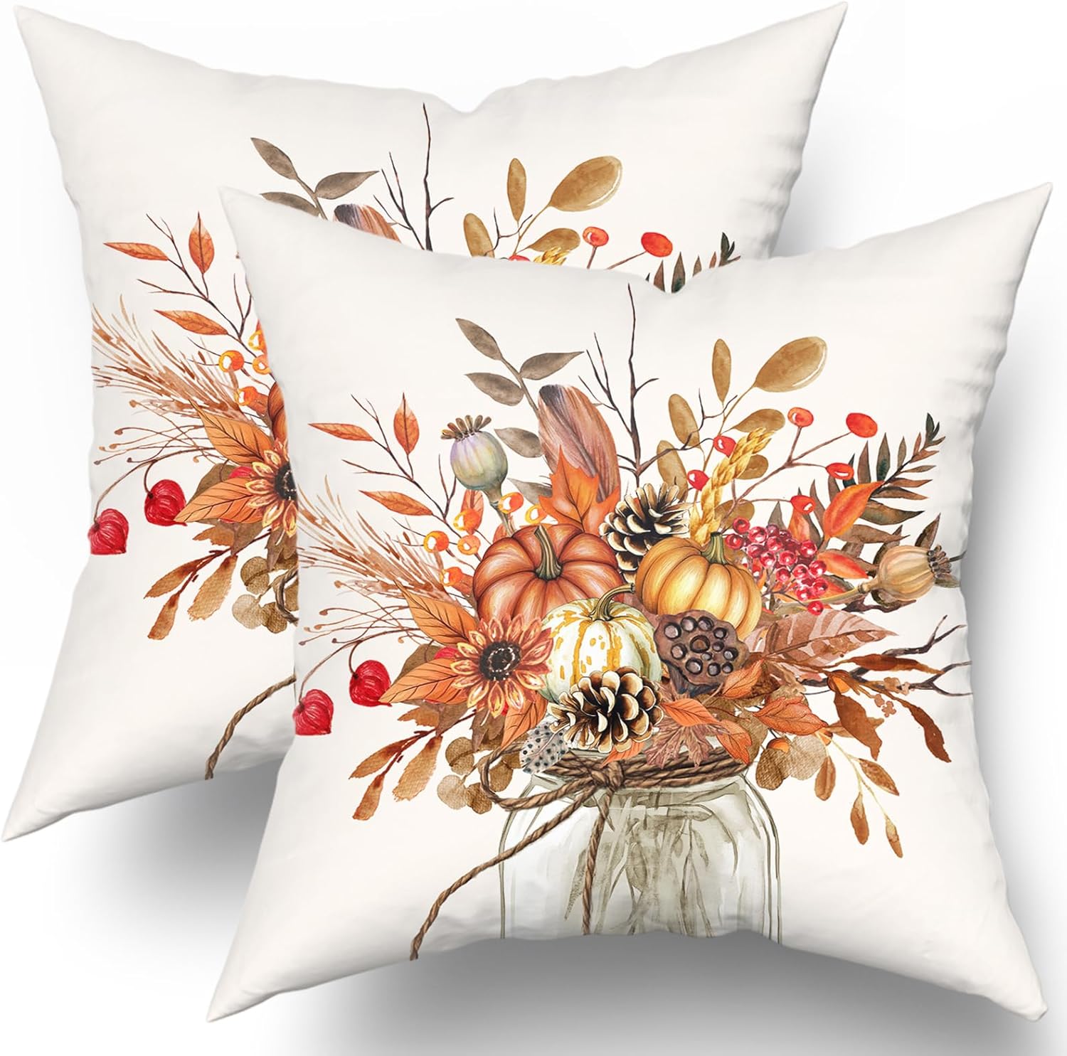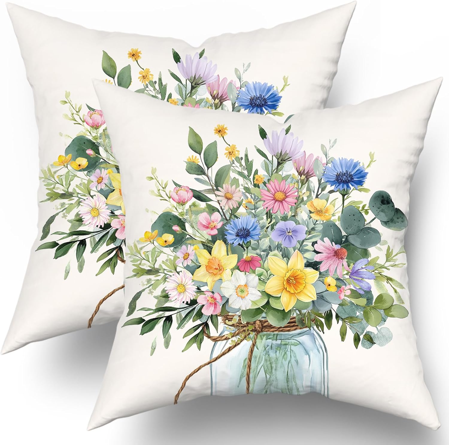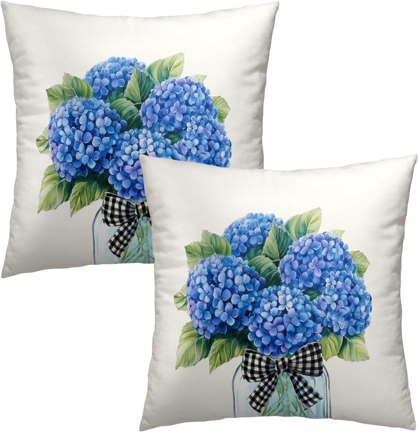 Welcome! Welcome to our world of flower pillows decorative throw pillow covers! We are proud to introduce our exclusive Spring Blue Hydrangea Mason Jar Decorative Throw Pillow Cover Set.Specification:Quantity: 2 piece cushion covers WITHOUT pillow insertPattern: Double-sided same pattern design, the pattern is clear, classicClosure: Hidden zip is easy to insert and clean, neat and elegantMaterial: 100% cotton, skin friendly, comfortable and durableSize: 24x24 Inches /60x60cmColor: As pictureFeatures:The pillow protectors with zipper are made of high-quality cotton, skin friendly, comfortable and durableThis cushion cover has an invisible zipper and all seams have been over-locked so it is easy to wash it.Invisible zipper improves appearance and provides easy insertion and removal.Application:The natural blue flower plant pillowcase are worth ordering throw pillows covers for your sofa or bed. These decorative cushion covers can make a day of your physical and mental fatigue relaxed. Throw pillow cases are suitable for the living room, bed, sofa, couch, and bedroom,office,patio,porch, etc.Warm Tips:Please allow 1-3mm error due to manual measurement. Please make sure you do not mind before you bid. Throw pillow cover ONLY, do not include pillow insert.The colors may have different as the difference display, please understand.In order to keep the color fresh, it is better to add salt to water for your first washing.Please feel free to contact us if you have any questions about this item. We will do our best to solve the problem and provide you the best service.Add a touch of whimsy and warmth to your space today!