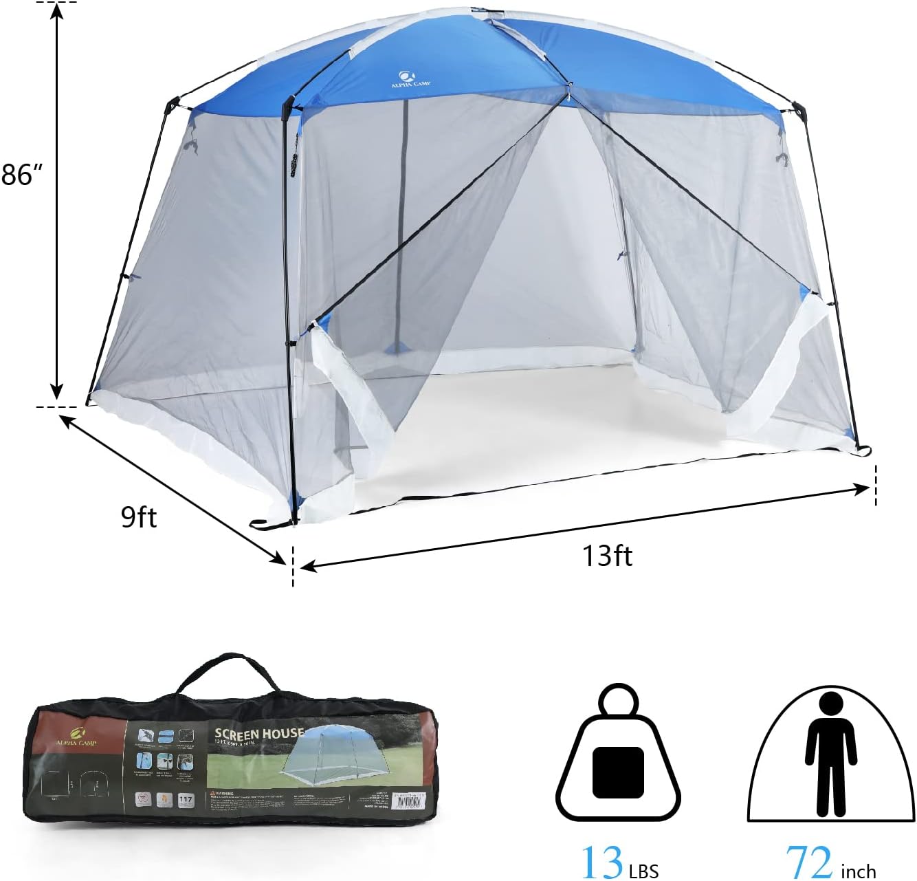 Screen House Tent Provide You a 360 degree view of your surroundings and protect from insects. You can easily and quickly assemble or take down the screen house with no hassle. Give you a nice trip, polyester material breathable design structure is suitable for beach, park ,garden,not suggest use on the heavy rain day, it may leak.