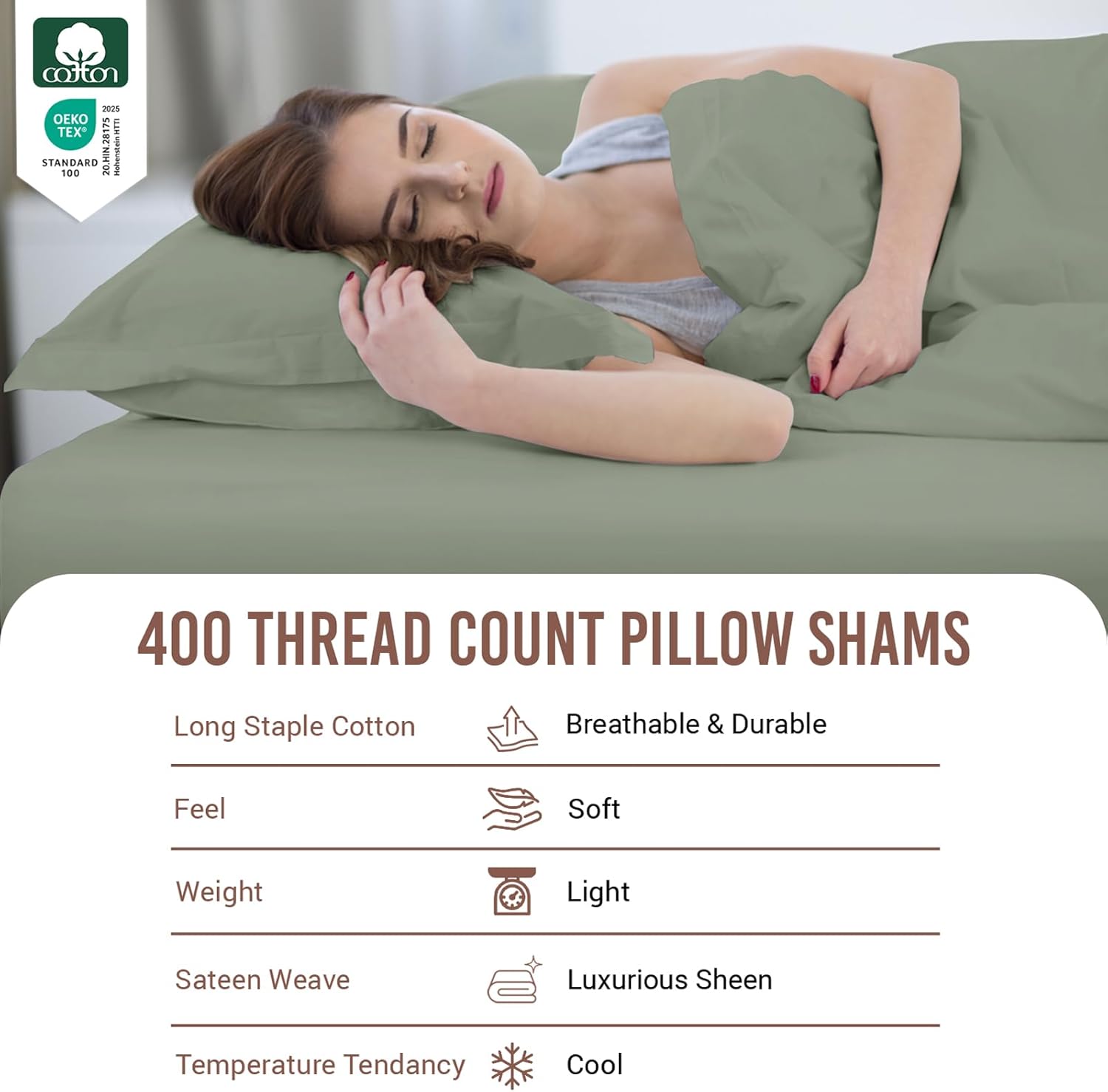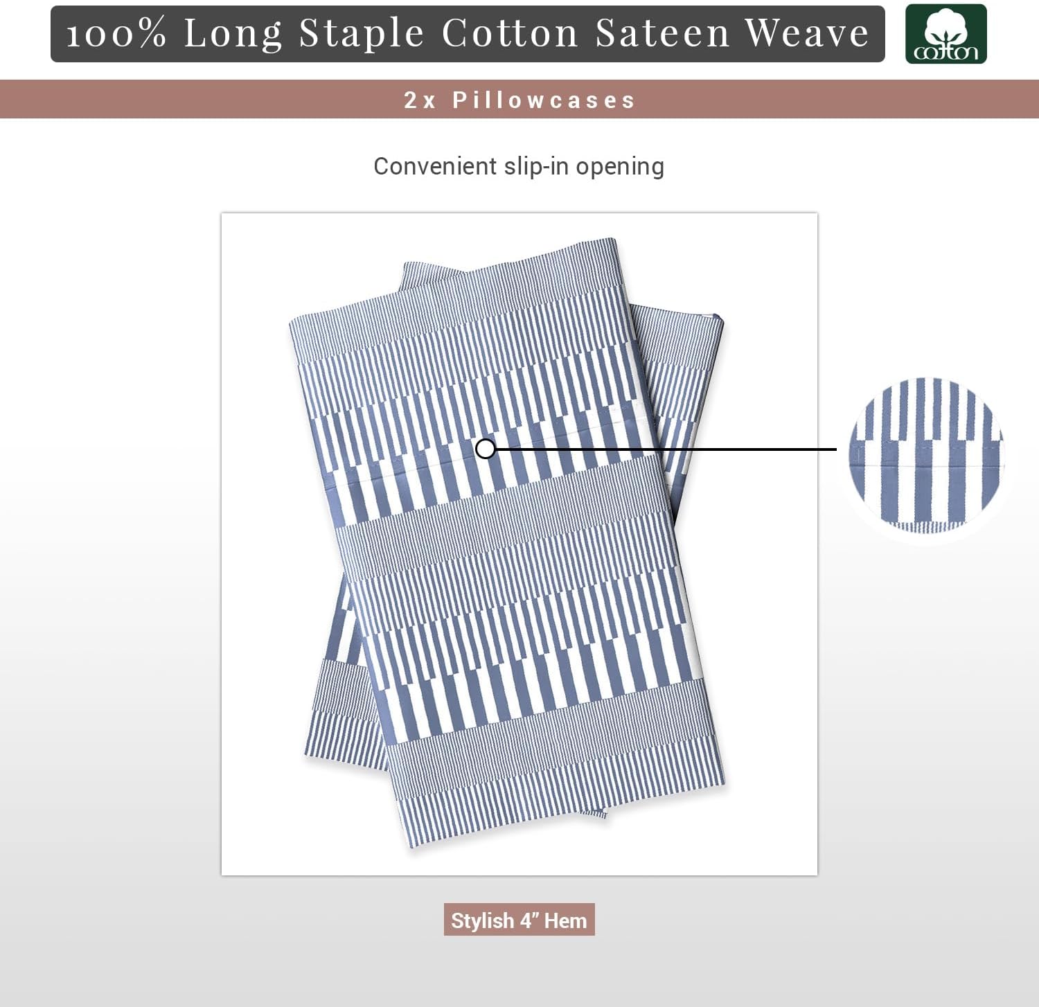 | Fabric Type | 100% Cotton, Breathable, Combed Cotton, Cooling, Long Staple Cotton Sateen Weave |