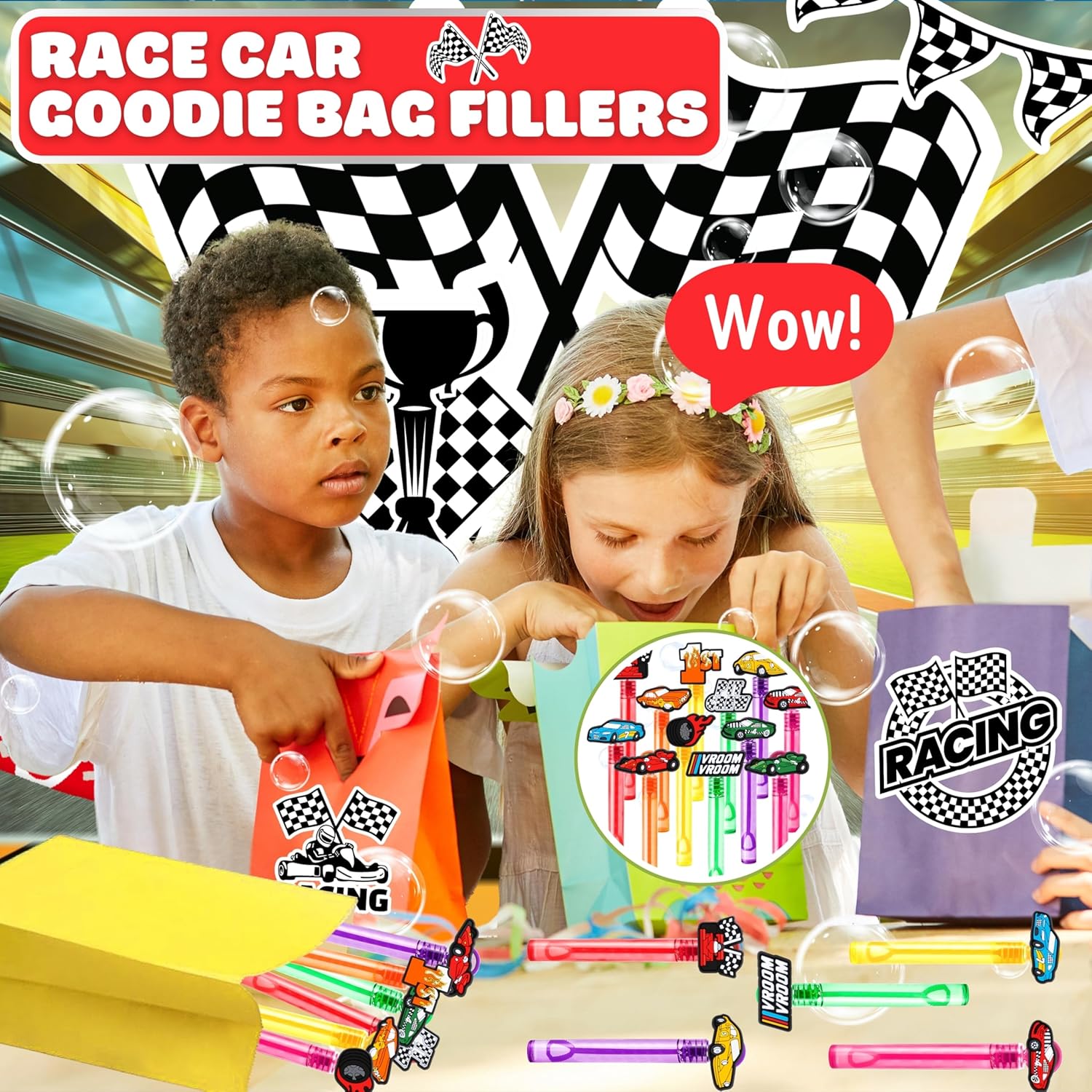 Race Car Party Favors for Kids โ€“ 24PCS Racing-Themed Bubble Wands, Great for Birthday Supplies, Pinata Fillers, Goodie Bags & Classroom Rewards