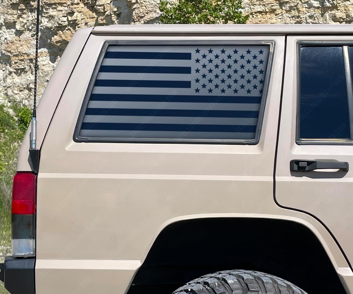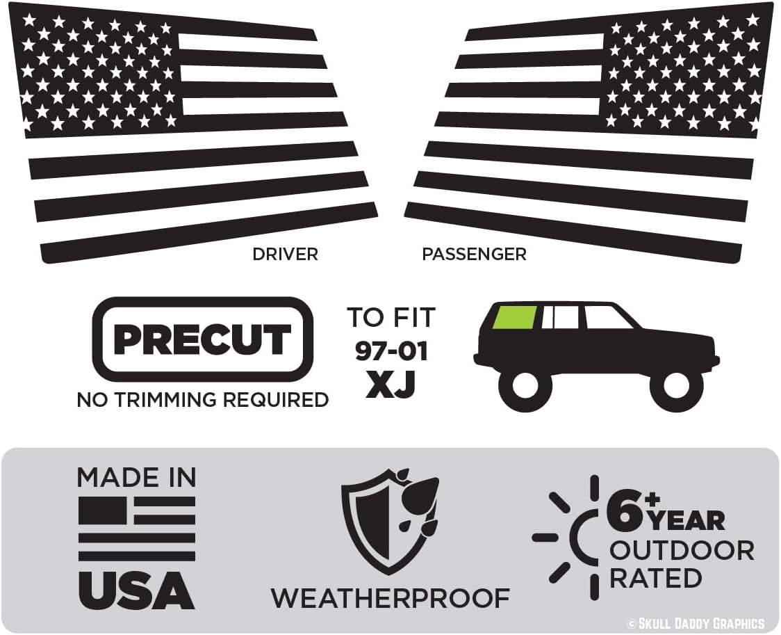Matte black vinyl flag decals, PRECUT - No trimming is required. Instructions included! They are correct facing, so the stars facing forward on each side. This is the correct way to display them.