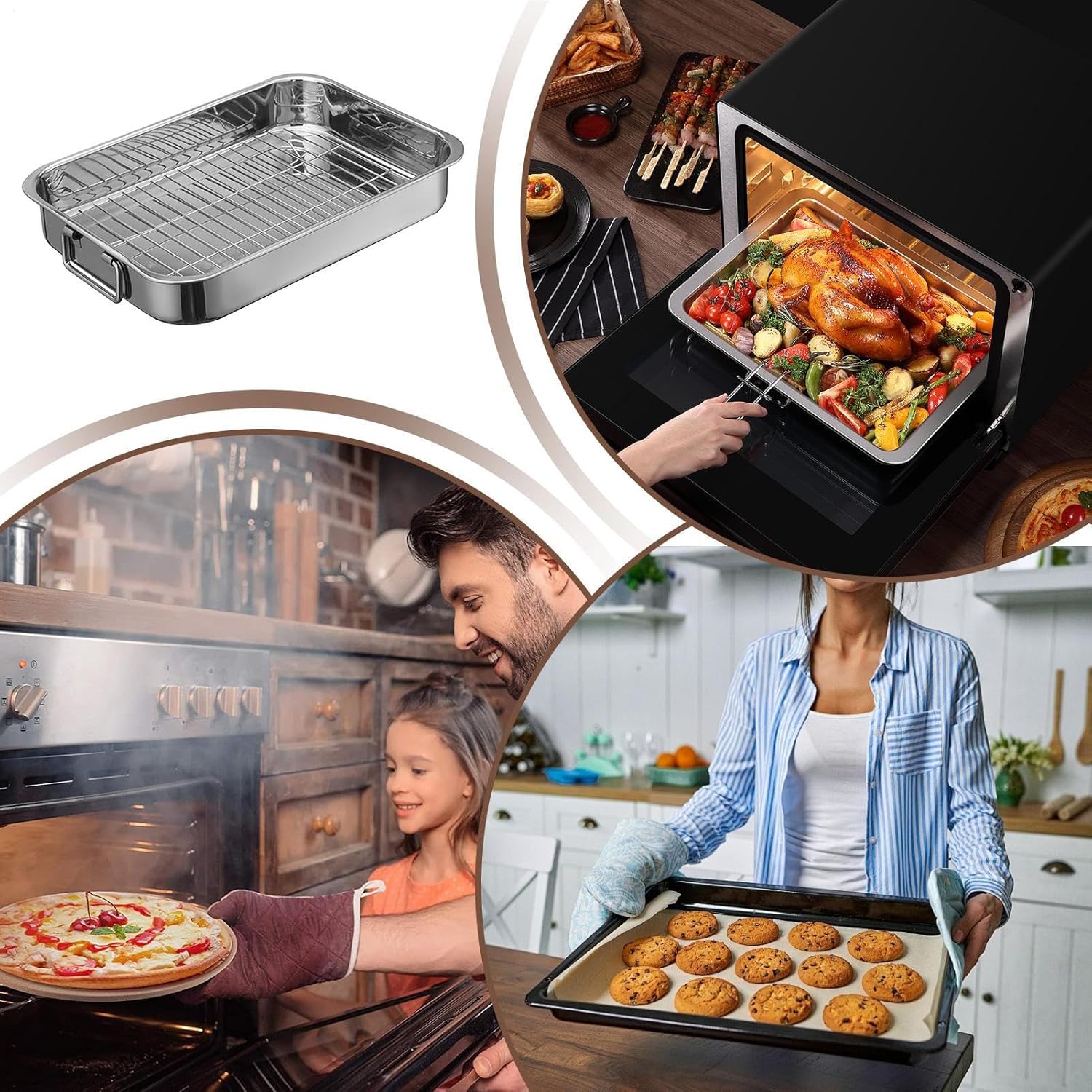 • Removable Stainless Steel Rack: Lifts meat the pan allowing air circulation, even roasting, and fat drainage while preventing sticking for healthier, flavorful meals