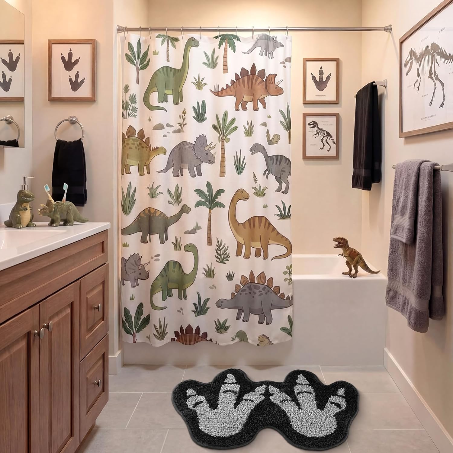 Features: Non-Slip Backing Engineered with a non-skid backing, this boy's bathroom mat stays firmly in place on tile, wood, or laminate floors. The textured surface enhances grip, reducing accidents in wet areas. Its lightweight, flexible design allows easy relocation between the bathroom, bedroom, or entryway. Ideal Gift Surprise young dinosaur fans with this unique gray bath mat! Its playful footprint shape and vibrant color make it a thoughtful gift for birthdays, holidays, or room makeovers. Pair it with other dinosaur-themed accessories for a coordinated, immersive theme in any boy's space. Specifications: Material: microfiber Color: gray Size: 24x16 inch Package includes: 1 x Footprints Bath Rug Notes: Manual measurement, please allow slight errors on size. The color may exist a slight difference due to different screen displays