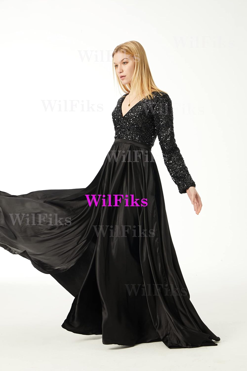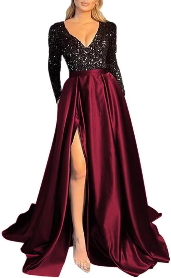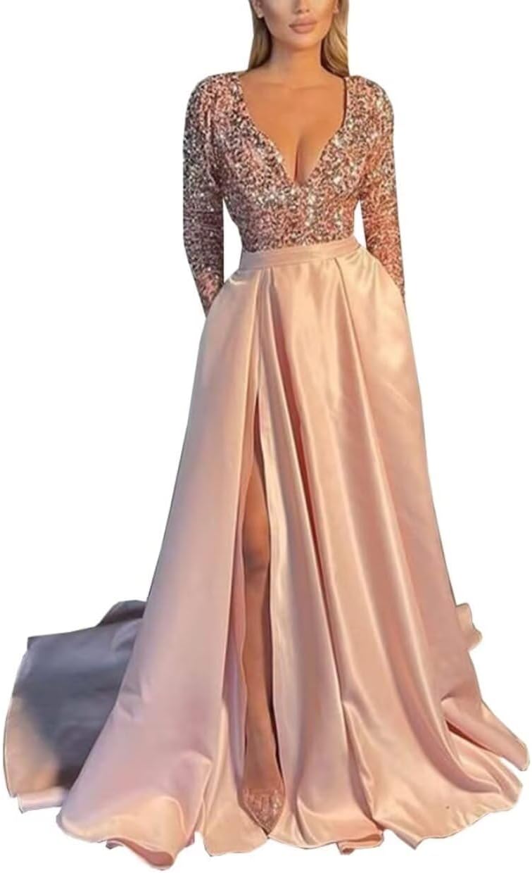 | Fabric Type | WilFiks Prom Dresses Fabric:Sparkly Sequin V Neck Prom Dresses with Slit Satin Long Sleeve Bridesmaid Dresses for Wedding 2026 Formal Evening Gowns with Slit |
